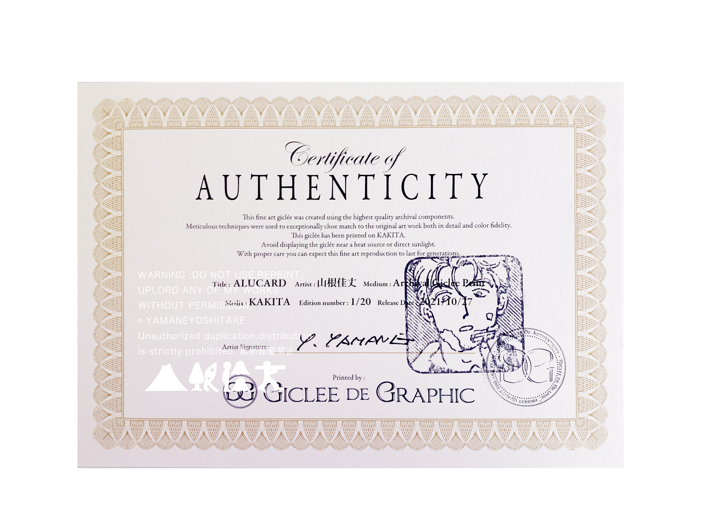 数量限定 作品証明書付属。